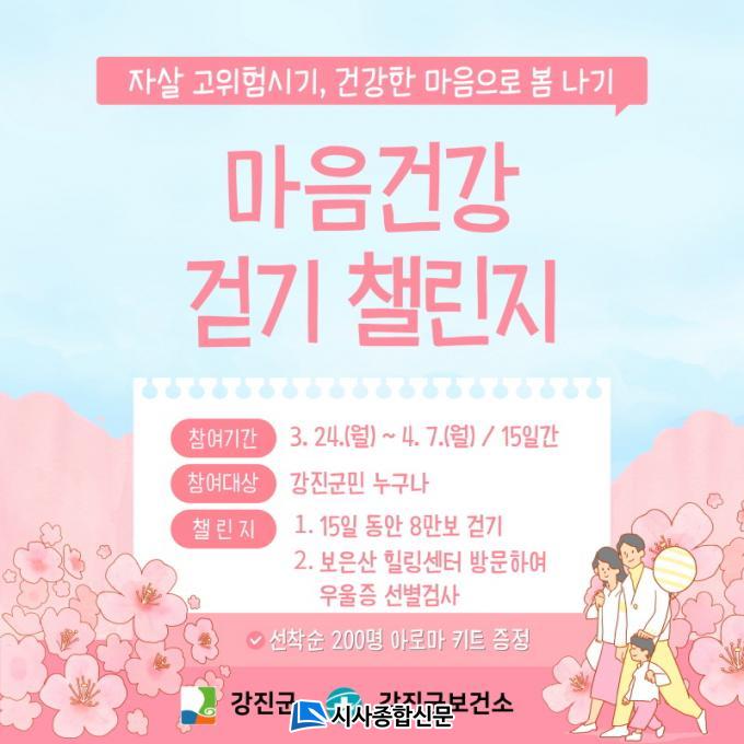 À̹ø 縰Áö´Â ¡®½ºÇÁ¸µ ÇÇÅ©¡¯ ±Øº¹À» À§ÇØ ¸¶·ÃµÆ´Ù. °Ç°ÇÑ ¸¶À½À¸·Î º½À» º¸³»±â À§ÇÑ °È±â µî ¿îµ¿ ½ÇõÀ» À¯µµÇϰí ÇÔ²² °È±â¸¦ ÅëÇÑ ¿ì¿ï°¨°ú ½ºÆ®·¹½º¸¦ ÇØ¼ÒÇÒ ¼ö ÀÖµµ·Ï ÀÌ´Þ 24ÀϺÎÅÍ 4¿ù 7ÀϱîÁö ÁøÇàµÈ´Ù.