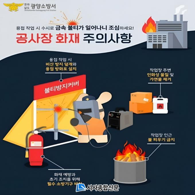 Á¤°¿Á ±¤¾ç¼Ò¹æ¼ÀåÀº ¡°°ø»çÀå¿¡¼ ¹ß»ýÇÏ´Â ÀÛÀº ºÒƼ°¡ ÀÚÄ©Çϸé Å« ÈÀç·Î ¹øÁú ¼ö ÀÖ´Ù.¡±¸ç ¡°ÀÛ¾÷ Àü ¾ÈÀü±³À°°ú ¾ÈÀü¼öÄ¢À» ÁؼöÇÏ¿© ÈÀç ¹× ¾ÈÀü»ç°í°¡ ¹ß»ýÇÏÁö ¾Êµµ·Ï öÀúÇÑ °ø»ç ÇöÀå °ü¸®¸¦ ´çºÎµå¸°´Ù.¡±°í ÀüÇß´Ù.