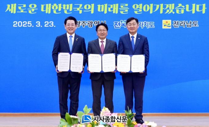 ±¤ÁÖ±¤¿ª½Ã(½ÃÀå °±âÁ¤)´Â 23ÀÏ Àü¶ó³²µµ¡¤ÀüºÏƯº°ÀÚÄ¡µµ¿Í ÇÔ²² ³ªÁÖ½Ãû ´ëȸÀǽǿ¡¼ ¡®È£³²±Ç ¸Þ°¡½ÃƼ °æÁ¦µ¿¸Í °È ¹× 2036 Çϰè¿Ã¸²ÇÈ ¼º°øÀ¯Ä¡¸¦ À§ÇÑ ¾÷¹«Çù¾à¡¯À» ü°áÇß´Ù.