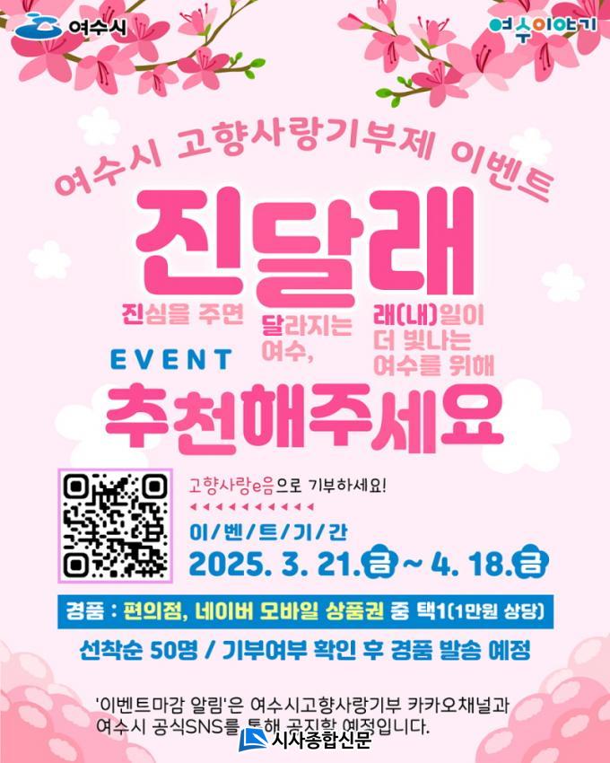 À̺¥Æ®´Â ¼±Âø¼ø 50¸íÀ» ´ë»óÀ¸·Î Çϸç, ´ç÷ÀÚ ¹ßÇ¥´Â 4¿ù 30ÀÏ ÀÌÈÄ °³º° ¿¬¶ô ¹× īī¿À ä³Î '¿©¼ö»ç¶û°íÇâ»ç¶û±âºÎÁ¦'¸¦ ÅëÇØ °øÁöµÈ´Ù. °æÇ°À¸·Î´Â 1¸¸ ¿ø »ó´çÀÇ ÆíÀÇÁ¡ ¶Ç´Â ³×À̹ö ¸ð¹ÙÀÏ »óǰ±Ç Áß ¼±ÅÃÇÒ ¼ö ÀÖ´Ù.