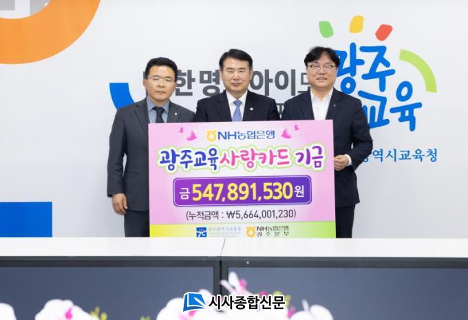 <»çÁø¼³¸í> 24ÀÏ ½Ã±³À°Ã» »óȲ½Ç¿¡¼ ÀÌÁ¤¼± ±³À°°¨(°¡¿îµ¥), NH³óÇùÀºÇà ±¤ÁÖº»ºÎÀå ÀåÀ翵(ÁÂ), ³óÇù±¤ÁÖº»ºÎÀå ÀÌÇöÈ£(¿ì) µîÀÌ Âü¼®ÇÑ °¡¿îµ¥ ±¤ÁÖ±³À°»ç¶ûÄ«µå ±â±Ý Àü´Þ½ÄÀÌ ÁøÇàµÆ´Ù.