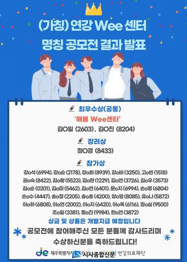 Áö³ 2¿ù µµ¹Î´ë»óÀ¸·Î ¿¬°ÀÇ·áÀç´Ü°ú Çù·ÂÇÏ¿© º´¿øÇü À§(Wee) ¼¾ÅÍ ¸íĪ °ø¸ð¿¡ ÃÑ 178¸íÀÌ ÀÀ¸ðÇÏ¿´°í ÃÖÁ¾¡®Çغ½ À§(Wee) ¼¾ÅÍ¡¯¼±Á¤µÇ¾ú´Ù.