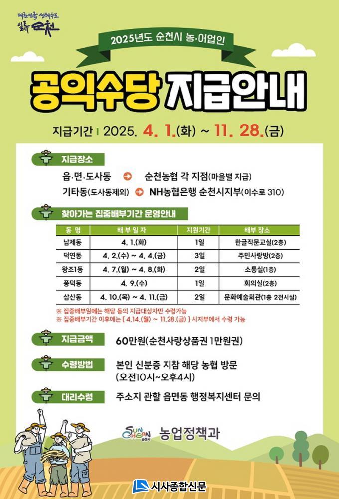 | ¼øÃµ½Ã, 2025³â ³ó¾î¹Î °øÀͼö´ç Áö±Þ °øÀͼö´ç, ¡®Ã£¾Æ°¡´Â Áö±Þ¡¯À¸·Î ´õ ½±°Ô! ºü¸£°Ô!