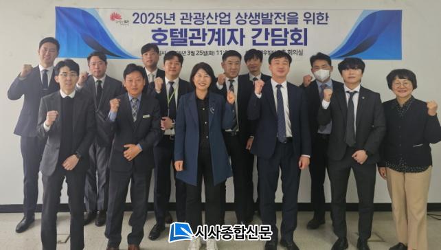 À̳¯ °£´ãȸ¿¡¼ ½Ã´Â Áö¿ª ³» ÁÖ¿ä È£ÅÚ¾÷°è °ü°èÀÚ 10¿© ¸í°ú ÀüÁֽà °ü·Ã ºÎ¼ °ø¹«¿øÀÌ Âü¼® ÇÑ °¡¿îµ¥, ÀüÁֽà ¼÷¹Ú°ü±¤°´ ¿©Çà»ç Àμ¾Æ¼ºê Áö¿øÁ¦µµ ¹× ÁÖ¿ä ÃßÁø»ç¾÷À» È«º¸Çß´Ù. ¶Ç È£ÅÚ¾÷°èÀÇ ¾Ö·Î»çÇ× ¹× °ÇÀÇ»çÇ×À» ûÃëÇϰí, ÇâÈÄ ÀüÁֽà °ü±¤»ê¾÷ Ȱ¼ºÈ¸¦ À§ÇÑ »ó»ý Çù·Â ¹æ¾È¿¡ ´ëÇØ »óÈ£ ÀǰßÀ» ±³È¯Çß´Ù.