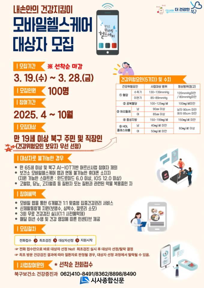 ¸ðÁý ÀÌÈÄ 4¿ù Áß ÃÖÁ¾ ´ë»óÀÚ¸¦ ¼±Á¤ÇÒ °èȹÀÌ¸ç ¼±¹ßµÈ ÀÚ¿¡°Ô´Â ¸ÂÃãÇü °Ç° »ó´ã ¹× ±³À°, °Ç° Á¤º¸ Á¦°ø, ½ÅüȰµ¿ ¹Ì¼Ç ºÎ¿© µî ¸ð¹ÙÀÏ ¾ÛÀ» ±â¹ÝÀ¸·Î ÇÏ´Â °Ç° °ü¸® ¼ºñ½º°¡ 6°³¿ù°£ Áö¿øµÈ´Ù.