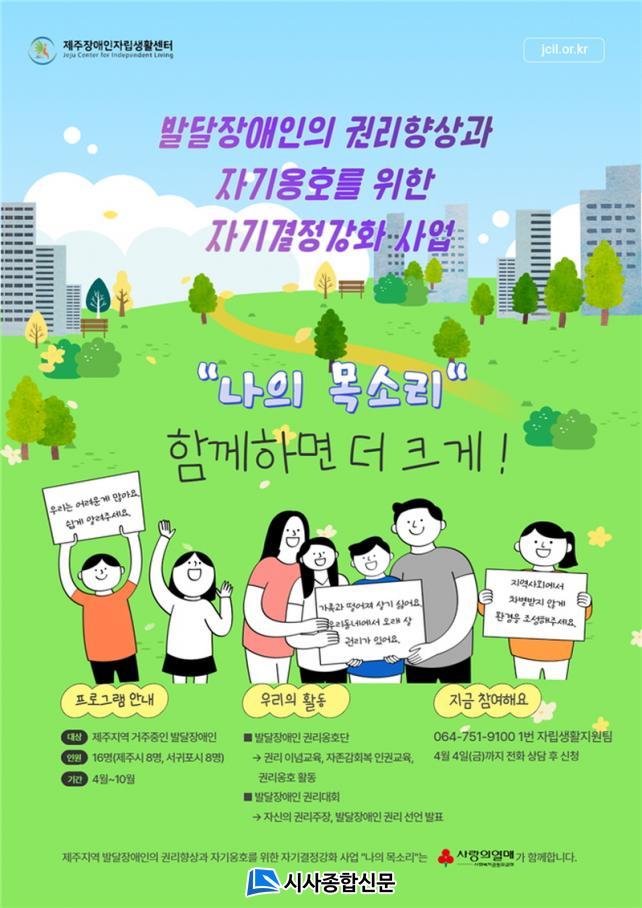 [½Ã»çÁ¾ÇսŹ® = °í¼º¹Î ±âÀÚ] Á¦ÁÖÀå¾ÖÀÎÀÚ¸³»ýȰ¼¾ÅÍ(¼¾ÅÍÀå ¼ÛâÇå)´Â ¹ß´ÞÀå¾ÖÀÎÀÇ ±Ç¸®Çâ»ó°ú ÀÚ±â¿ËÈ£¸¦ À§ÇÑ ÀÚ±â°áÁ¤°È»ç¾÷ ¡°³ªÀÇ ¸ñ¼Ò¸®¡±ÀÇ »ç¾÷ Âü¿©ÀÚ¸¦ ¸ðÁýÇÑ´Ù.