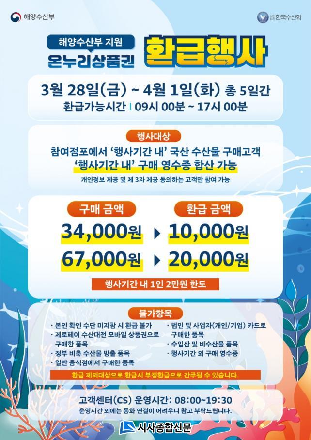 ÇØ¾ç¼ö»êºÎ°¡ ÁÖ°üÇÏ´Â À̹ø Çà»ç´Â ¿À´Â 3¿ù 28ÀϺÎÅÍ 4¿ù 1ÀϱîÁö ¼ö»ê¹°Á¾ÇÕ¼¾ÅÍ¿¡¼ ÁøÇàµÈ´Ù. Âü¿© Á¡Æ÷´Â ¼ö»ê¹°Á¾ÇÕ¼¾ÅÍ 100°³, ÇØ½Å»ó°¡ 9°³·Î ÃÑ 109°³ Á¡Æ÷ÀÌ´Ù.