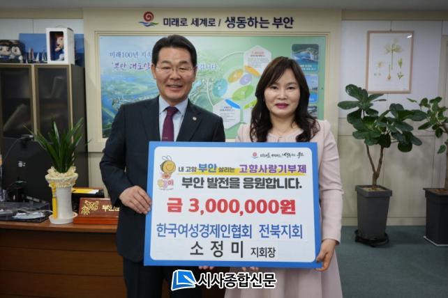 [½Ã»çÁ¾ÇսŹ® = ¿À½ÂÅà ±âÀÚ] ºÎ¾È±ºÀº Áö³ 25ÀÏ ¼ÒÁ¤¹Ì Çѱ¹¿©¼º°æÁ¦ÀÎÇùȸ ÀüºÏÁöȸÀåÀÌ ºÎ¾È±º °íÇâ»ç¶û±âºÎ±Ý 300¸¸¿øÀ» ±âºÎÇϸç Áö¿ª»çȸ ¹ßÀüÀ» À§ÇÑ µû¶æÇÑ ³ª´®À» ½ÇõÇß´Ù°í ¹àÇû´Ù.