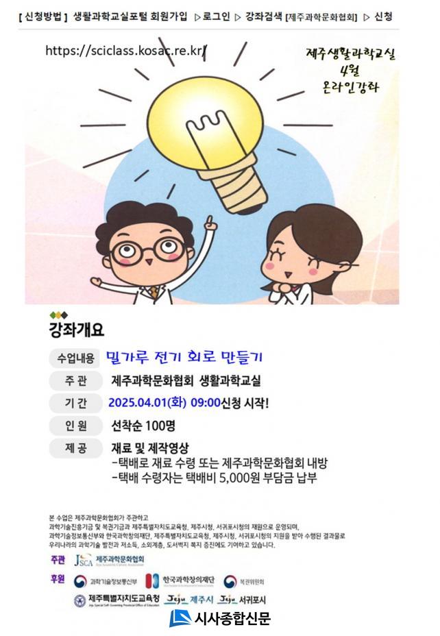 [½Ã»çÁ¾ÇսŹ® = °í¼º¹Î ±âÀÚ] Á¦ÁÖ°úÇй®ÈÇùȸ(ÀÌ»çÀå °í¿ëö)´Â °úÇбâ¼úÁ¤º¸Åë½ÅºÎ, Çѱ¹°úÇÐâÀÇÀç´Ü, º¹±ÇÀ§¿øÈ¸ÀÇ Áö¿øÀ» ¹Þ¾Æ, °¡Á¤¿¡¼ ÇлýÀÌ °¡Á·°ú ÇÔ²² ´Ù¾çÇÑ °úÇбâ¼ú ÁÖÁ¦¿¡ ´ëÇÑ ½ÇÇè, Á¦ÀÛ µî üÇèÀ» Çϸç âÀǷ°ú ޱ¸·ÂÀ» Ű¿ö °¡´Â ¡®2025 ¿Â¶óÀÎ »ýȰ°úÇб³½Ç¡¯À» 3¿ùºÎÅÍ ¿î¿µÇϰí ÀÖ´Ù.
