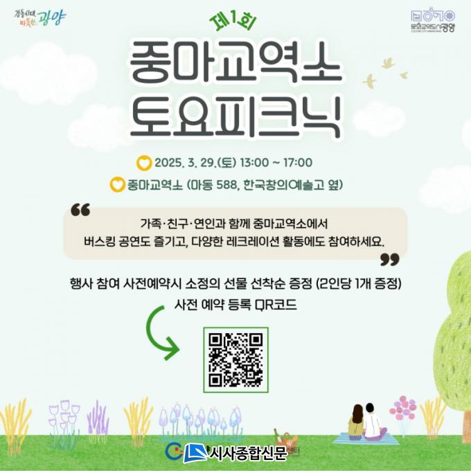 2025³â »ó¹Ý±â ¡´Åä¿äÇÇÅ©´Ð¡µÀº 3¿ù 29ÀÏÀ» ½ÃÀÛÀ¸·Î 7¿ù 12ÀϱîÁö ¸Å¿ù µÑ°ÁÖ, ³Ý°ÁÖ Åä¿äÀÏ¿¡ Á߸¶±³¿ª¼Ò¿¡¼ ÁøÇàµÈ´Ù. Âü¼®À» ¿øÇÏ´Â ½Ã¹ÎµéÀº ±¤¾ç¹®Èµµ½Ã¼¾ÅÍ °ø½Ä ÀνºÅ¸±×·¥ µîÀ» ÅëÇØ Âü¿© »çÀü µî·ÏÀ» ÇÒ ¼ö ÀÖÀ¸¸ç, »çÀü µî·ÏÀ» ÅëÇØ Âü¼®ÇÑ ½Ã¹Îµé¿¡ ÇÑÇØ ¼ÒÁ¤ÀÇ ¼±¹°µµ Á¦°øÇÒ ¿¹Á¤ÀÌ´Ù.