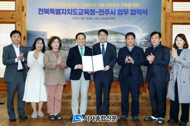 ÀüÁÖ½Ã¿Í ÀüºÏƯº°ÀÚÄ¡µµ±³À°Ã»Àº 31ÀÏ Àü¶ó°¨¿µ ¼±È´ç¿¡¼ ¼°Å¼® ±³À°°¨°ú ¿ì¹ü±â ÀüÁÖ½ÃÀå µî ¾ç ±â°ü °ü°èÀÚµéÀÌ Âü¼®ÇÑ °¡¿îµ¥ ¡®¸¶À̽º»ê¾÷ Ȱ¼ºÈ ¹× ¹Ì·¡±³À° Áö¿ø ³×Æ®¿öÅ© ±¸ÃàÀ» À§ÇÑ ¾÷¹«Çù¾à(MOU)¡¯À» ü°áÇß´Ù.