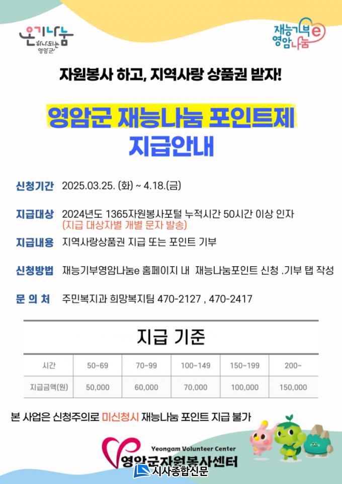 Æ÷ÀÎÆ® ½ÅûÀº ¡®Àç´É±âºÎ ¿µ¾Ï³ª´®e¡¯ ȨÆäÀÌÁö¿¡¼ ÇÒ ¼ö ÀÖ°í, ÀÎÁ¤ ºÀ»ç ½Ã°£¿¡ µû¶ó ¿µ¾Ï±ºÀº 5~15¸¸¿øÀÇ Áö¿ª»ç¶û»óǰ±ÇÀ» Á¦°øÇÒ ¿¹Á¤ÀÌ´Ù.