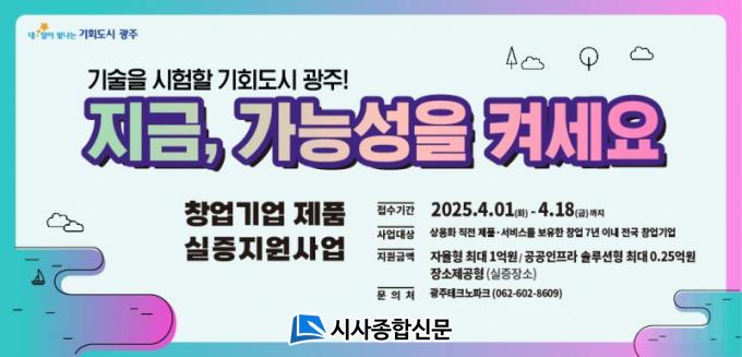 ±¤ÁÖ±¤¿ª½Ã(½ÃÀå °±âÁ¤)´Â ¡®2025³âµµ â¾÷±â¾÷Á¦Ç° ½ÇÁõÁö¿ø»ç¾÷¡¯À» È®´ëÇϰí Âü¿©±â¾÷À» 4¿ù 1ÀϺÎÅÍ 18ÀϱîÁö ¸ðÁýÇÑ´Ù.