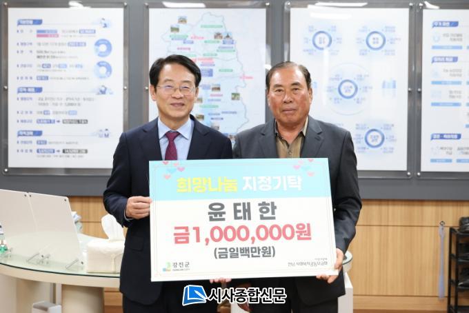 [½Ã»çÁ¾ÇսŹ® = ¿À½ÂÅà ±âÀÚ] °Áø±º ±ºµ¿¸é È£µ¿¸¶À»¿¡ °ÅÁÖÇÏ´Â À±ÅÂÇѾ¾°¡ Áö³ 27ÀÏ Áö¿ª ³» Àú¼Òµæ Ãë¾à°èÃþÀ» µ½±â À§ÇØ °Áø±º¿¡ 100¸¸ ¿øÀ» ±âŹÇß´Ù.