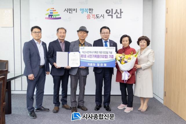 Á¤ÇåÀ² ÀÍ»ê½ÃÀåÀº "±ÍÇÑ ±â·ÏÀ» ±âÁõÇØ ÁֽŠÁ¤Àοø ¼±»ý´Ô²² ±íÀº °¨»ç¸¦ µå¸°´Ù¸ç, À̹ø ¶æ±íÀº ±âÁõÀ» °è±â·Î ÀÍ»êÀÇ ±â·Ï¹®È°¡ ÇÑÃþ dz¼ºÇØÁú ¼ö ÀÖµµ·Ï ´õ¿í ³ë·ÂÇϰڴÙ"°í ¸»Çß´Ù.