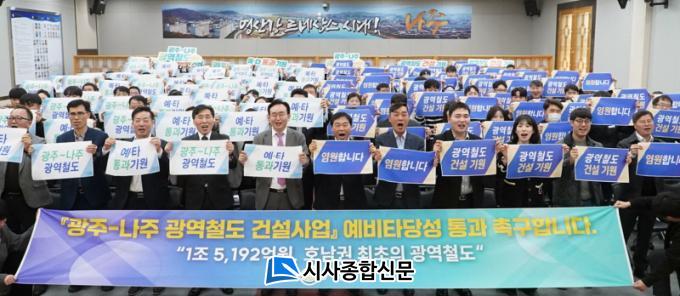 ³ªÁֽð¡ ±¤ÁÖ-³ªÁÖ ±¤¿ªÃ¶µµ»ç¾÷ ¿¹ºñŸ´ç¼º Á¶»ç Åë°ú¸¦ ¹Ù¶ó´Â Áö¿ª¹ÎµéÀÇ ¿°¿øÀ» Çϳª·Î ¸ð¾Æ °áÀǸ¦ ´ÙÁö°í ÀÖ´Ù.