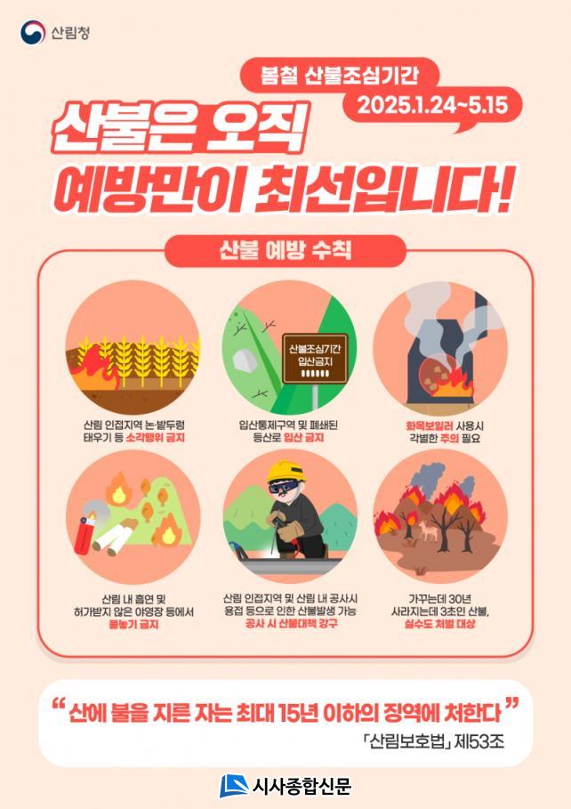 ÀüÁֽô ´ëÇü»êºÒ Ưº°´ëÃ¥±â°£À» 4¿ù15ÀϱîÁö ¿î¿µÇÏ°í Æ¯È÷ À̹ø ÁÖ¸» ÈÞÀÏ »êºÒ¿¹¹æÀ» À§ÇØ »ê¸²ÀÎÁ¢ ÇØ´çµ¿¿¡¼´Â ¿µ³óºÎ»ê¹° ºÒ¹ý¼Ò°¢, ¾²·¹±â ¼Ò°¢, ȸñº¸ÀÏ·¯ Àçó¸® ºÎÁÖÀÇ °ü¸® µî »êºÒ ¿¹Âû Ȱµ¿À» ÁýÁß ½Ç½ÃÇÏ¿© »êºÒ ÁÖ¿ä¿øÀÎÀ» Â÷´ÜÇÑ´Ù.