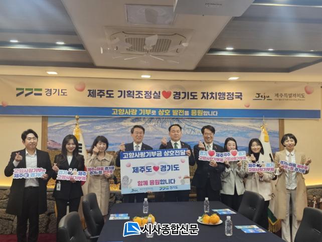 Á¦ÁÖµµ´Â 2ÀÏ ¿ÀÈÄ Á¦ÁÖµµÃ»¿¡¼ °æ±âµµ¿Í °íÇâ»ç¶û±âºÎ±ÝÀ» »óÈ£ ±âŹÇÏ°í »ó»ýÇù·Â ¹æ¾ÈÀ» ³íÀÇÇÏ´Â ¶æ±íÀº ÀÚ¸®¸¦ °¡Á³´Ù. Çà»ç¿¡´Â Á¦ÁÖ4.3 Ãß³ä½Ä Âü¼®À» À§ÇØ Á¦ÁÖ¸¦ ãÀº ±è»ó¼ö °æ±âµµ ÀÚÄ¡ÇàÁ¤±¹ÀåÀ» ºñ·ÔÇÑ °æ±âµµÃ» °ü°èÀÚµéÀÌ Âü¼®Çß´Ù.