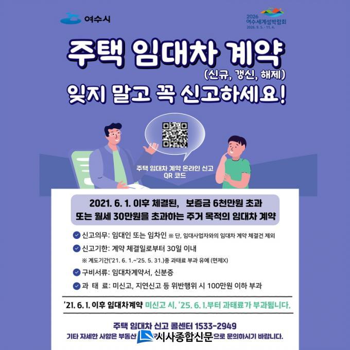 | ¿©¼ö½Ã(½ÃÀå Á¤±â¸í)´Â ÁÖÅà ÀÓ´ëÂ÷ °è¾à ½Å°í °èµµ±â°£ÀÌ ¿À´Â 5¿ù 31ÀÏ Á¾·áµÊ¿¡ µû¶ó 6¿ùºÎÅÍ ¹Ì½Å°í ¶Ç´Â °ÅÁþ ½Å°í ½Ã °úÅ·ᰡ ºÎ°úµÈ´Ù°í ¹àÇû´Ù.