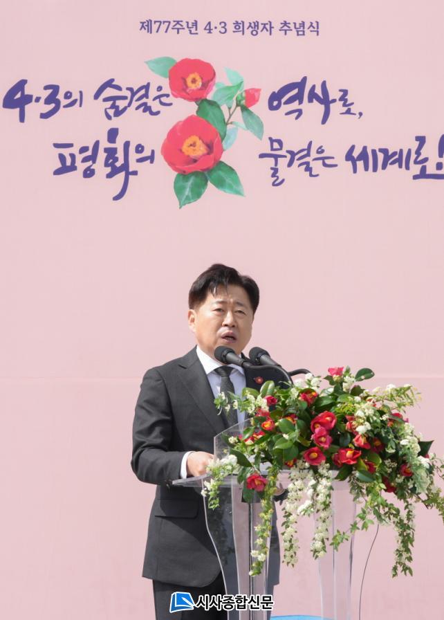 ¡®4¡¤3ÀÇ ¼û°áÀº ¿ª»ç·Î, ÆòÈÀÇ ¹°°áÀº ¼¼°è·Î¡¯¶ó´Â ÁÖÁ¦·Î ¿¸° À̹ø Ãß³ä½ÄÀº Á¦ÁÖ4¡¤3ÀÇ ¿ª»çÀû Àǹ̸¦ ¼¼°è ÆòÈÀÇ ¸Þ½ÃÁö·Î ½ÂÈÇÏ´Â ÀÚ¸®¿´´Ù. ƯÈ÷ 4¡¤3±â·Ï¹°ÀÇ À¯³×½ºÄÚ ¼¼°è±â·ÏÀ¯»ê µîÀ縦 ¾ÕµÐ ½ÃÁ¡¿¡¼ Á¦ÁÖ4¡¤3ÀÇ º¸ÆíÀû °¡Ä¡¸¦ ±¹Á¦»çȸ¿Í °øÀ¯ÇÏ´Â ÀÇ¹Ì ÀÖ´ÂÇà»ç·Î ÁøÇàµÆ´Ù.
