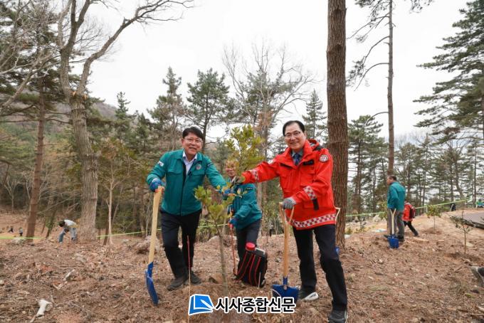 À̳¯ ±º¿Ü¸é »ïµÎ¸® Ãß¸ð °ø¿ø ³» 2ha ±Ô¸ðÀÇ »ê¸²¿¡ Áö¿ª ´ëÇ¥ ³´ë ¼öÁ¾ÀΠȲĥ³ª¹«¿Í ¿Ïµµ±º Áö¸íÀÌ ¸í¸íµÈ ¿ÏµµÈ£¶û°¡½Ã³ª¹« 1,500ÁÖ¸¦ ½ÄÀçÇß´Ù. ¾Æ¿ï·¯ »êºÒ ¿¹¹æ Ä·ÆäÀÎÀ» º´ÇàÇØ »êºÒ¿¡ ´ëÇÑ °æ°¢½ÉÀ» °íÃë½ÃÄ×´Ù.