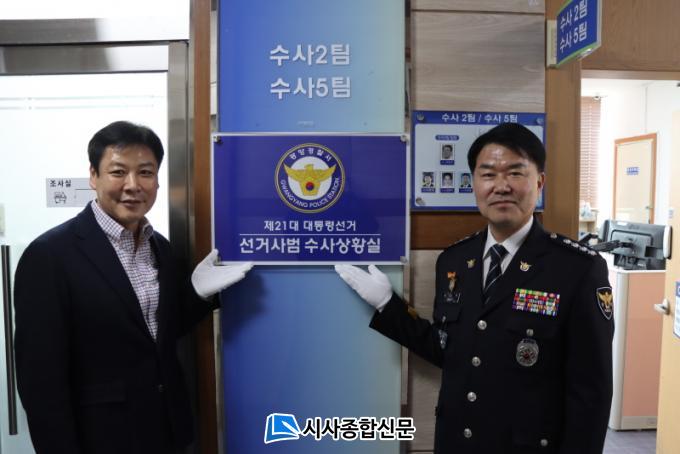 [½Ã»çÁ¾ÇսŹ® = Àå¹Î±Ô ±âÀÚ] ±¤¾ç°æÂû¼(¼Àå ¼Û±âÁÖ)´Â 4¿ù 9ÀÏ ÅëÇÕ¼ö»ç2ÆÀ »ç¹«½Ç ¾Õ¿¡¼ Á¦21´ë ´ëÅë·É ¼±°Å °ü·Ã ¡®¼±°Å»ç¹ü ¼ö»ç»óȲ½Ç¡¯À» ¸¶·ÃÇϰí ÇöÆÇ½ÄÀ» °¡Á³´Ù.