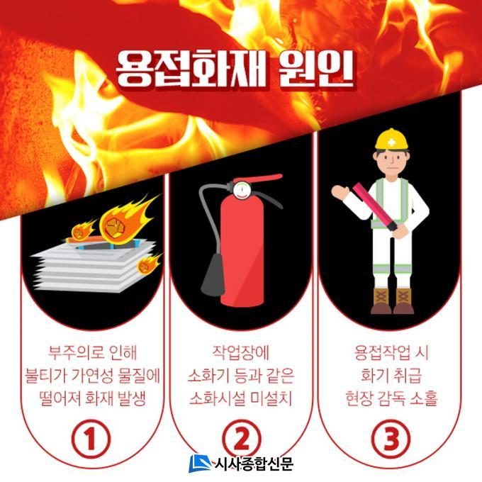 ¿ëÁ¢ ÀÛ¾÷Àº ºÒ²É°ú °í¿À» ¹ß»ý½Ã۱⠶§¹®¿¡, ºÒƼ°¡ Æ¢´Â »ç°í°¡ ºó¹øÈ÷ ¹ß»ýÇϰí ÀÖ´Ù. ƯÈ÷, °Ç¼³ ÇöÀå¿¡´Â ÀÎȼº ¹°ÁúÀÌ ¸¹°í, º¹ÀâÇÑ ÀÛ¾÷ ȯ°æÀ¸·Î ÀÎÇØ ÈÀç ¹ß»ý ½Ã ÇÇÇØ°¡ Ä¿Áú ¼ö ÀÖ´Ù. ÀÌ¿¡ µû¶ó ÀåÈï¼Ò¹æ¼´Â °Ç¼³ ÇöÀå¿¡¼ÀÇ ÈÀç ¿¹¹æÀ» À§ÇÑ ±¸Ã¼ÀûÀÎ ¾ÈÀü ¼öÄ¢À» Á¦½ÃÇß´Ù.