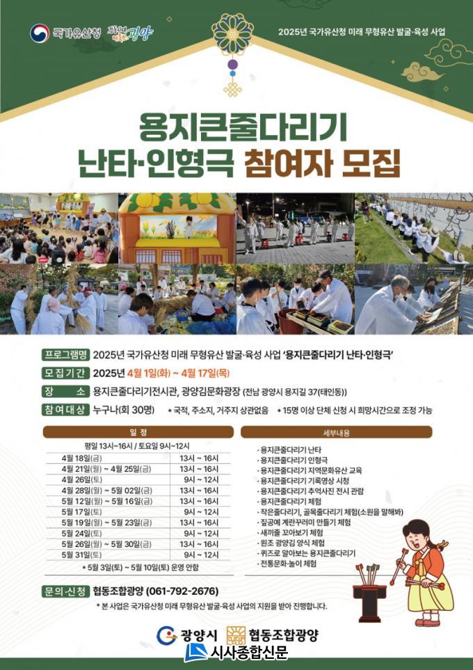 ±è´ë¼º Çùµ¿Á¶ÇÕ±¤¾ç ´ëÇ¥´Â ¡±À̹ø ³Å¸¡¤ÀÎÇü±ØÀ¸·Î ¾î¸°ÀÌÁý ¾î¸°ÀÌ, ÃʵîÇлý, Áö¿ª¾Æµ¿¼¾ÅÍ ¾î¸°ÀÌ, ´Ù¹®È°¡Á·, 65¼¼ ÀÌ»ó ¾î¸£½Å, Àå¾ÖÀÎ, Áö¿ª±â¾÷ ±Ù·ÎÀÚ, ±¤¾ç½Ã¹Î, °ü±¤°´±îÁö »çȸÀû ¾àÀÚ¸¦ Æ÷ÇÔÇÑ ´Ù¾çÇÑ °èÃþ¿¡°Ô ¿ëÁöÅ«Áٴٸ®±âÀÇ ÀÇ¹Ì¿Í °¡Ä¡¸¦ Èï¹Ì·Ó°Ô ¾Ë¸± °èȹ¡°À̶ó¸ç ¡°³Å¸¡¤ÀÎÇü±Ø¿¡ Âü¿©ÇÏ¸ç ¿ëÁöÅ«Áٴٸ®±â »Ó¸¸ ¾Æ´Ï¶ó ¿ì¸® ±¤¾çÁö¿ª ¹«ÇüÀ¯»ê¿¡ ´õ °ü½ÉÀ» °¡Á®º¸½Ã±æ ¹Ù¶õ´Ù¡±°í ¹àÇû´Ù.