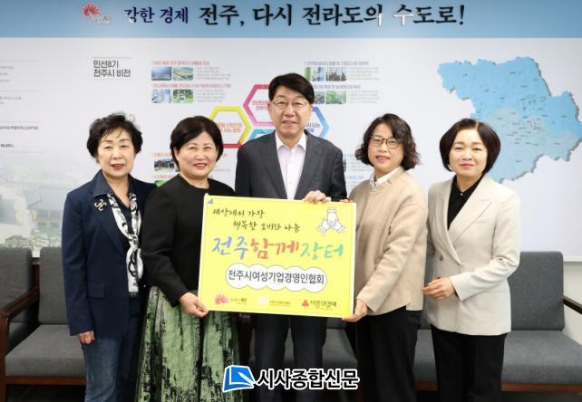 ÀüÁֽÿ©¼º±â¾÷°æ¿µÀÎÇùȸ(ȸÀå ¾Èº´¼÷)´Â 10ÀÏ ÀüÁÖ½ÃÀå½ÇÀ» ¹æ¹®ÇØ Áö¿ª°æÁ¦ Ȱ¼ºÈ¿Í ¿¬´ëÀÇ ¼Òºñ¹®È È®»êÀ» À§ÇÑ ¡®ÀüÁÖÇÔ²²ÀåÅÍ¡¯ ±âºÎ±Ý 300¸¸ ¿øÀ» Àü´ÞÇß´Ù.