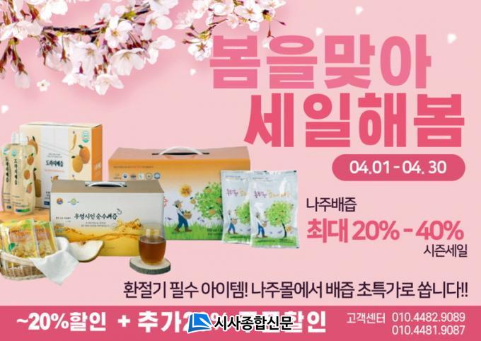 | ³ªÁÖ½Ã, ³óƯ»ê¹° ¼îÇθô ¡®³ªÁÖ¸ô¡¯ º½¸ÂÀÌ ¹èÁó ÇÒÀÎ Çà»ç ÁøÇà 4¿ù 30ÀϱîÁö, ³ªÁÖ ¹èÁó ÃÖ´ë 40% ½Ñ °¡°Ý¿¡ ¹«·á¹è¼Û±îÁö |