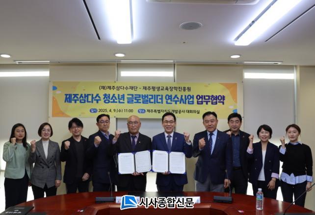 Á¦ÁÖ°³¹ß°ø»ç°¡ ¿î¿µÇÏ´Â Àç´Ü¹ýÀÎ Á¦ÁÖ»ï´Ù¼öÀç´Ü(ÀÌ»çÀå ¹é°æÈÆ)Àº ¿ÃÇØ Àç´Ü ¼³¸³ 20ÁÖ³â ¹× Á¦ÁÖ°³¹ß°ø»ç ⸳ 30ÁÖ³âÀ» ±â³äÇØ Á¦ÁÖÆò»ý±³À°ÀåÇÐÁøÈï¿ø(¿øÀå ÁøÈñÁ¾)°ú 9ÀÏ ¡®Á¦ÁÖ»ï´Ù¼ö û¼Ò³â ±Û·Î¹ú ¸®´õ ¿¬¼ö»ç¾÷¡¯ ÃßÁøÀ» À§ÇÑ ¾÷¹«Çù¾àÀ» ü°áÇß´Ù°í ¹àÇû´Ù.