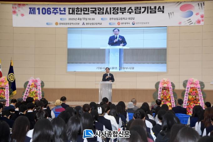 [½Ã»çÁ¾ÇսŹ® = ¿À½ÂÅà ±âÀÚ] ±¤ÁÖ±¤¿ª½Ã(½ÃÀå °±âÁ¤)´Â 11ÀÏ ¿ÀÀü 10½Ã30ºÐ ºÏ±¸ ¼þÀϰíµîÇб³¿¡¼ ¡®Á¦106Áֳ⠴ëÇѹα¹ ÀÓ½ÃÁ¤ºÎ ¼ö¸³ ±â³ä½Ä¡¯ÀÌ ¿·È´Ù°í ¹àÇû´Ù.