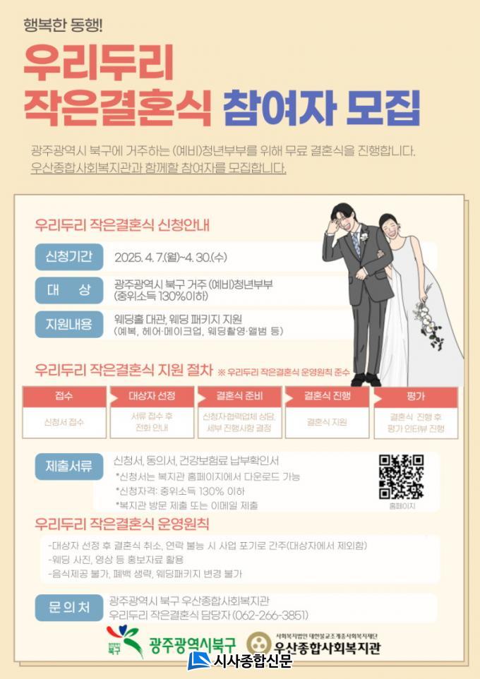 ÇÑÆí, ºÏ±¸´Â Áö³ 2019³âºÎÅÍ ¡®¿ì¸®µÎ¸® ÀÛÀº°áÈ¥½Ä¡¯ »ç¾÷À» ½ÃÀÛÇÏ¿© ÃÑ 20½ÖÀÇ Ãë¾à°èÃþ ºÎºÎ°¡ °áÈ¥½ÄÀ» ¿Ã¸± ¼ö ÀÖµµ·Ï Áö¿øÇÏ¿´´Ù.