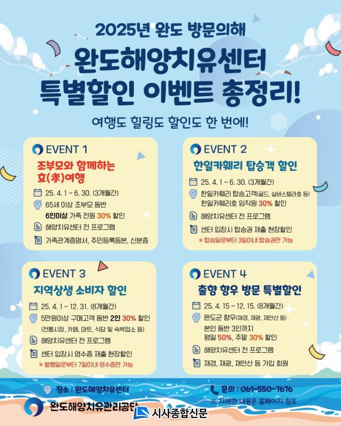 ÀÌ¿¡ °ø´ÜÀº ´õ ¸¹Àº Ä¡À¯°´µéÀÌ ÇØ¾çÄ¡À¯¸¦ ÅëÇØ °Ç°À» ÁõÁøÇÒ ¼ö ÀÖµµ·Ï Á¶ºÎ¸ð¿Í ÇÔ²²ÇÏ´Â È¿(üø) ¿©Çà, ´ÙÀڳࡤÀ°¾Æ °¡Á·, Çâ¿ì, ÇÑÀϰí¼ÓÆä¸® À̿밴, °ü³» ¾÷¼Ò ÀÌ¿ë °í°´ µîÀ» ´ë»óÀ¸·Î ¼¾ÅÍ ÀÌ¿ë·á¸¦ ÇÒÀÎÇØÁÖ±â·Î Çß´Ù. 65¼¼ ÀÌ»ó Á¶ºÎ¸ð¸¦ µ¿¹ÝÇÏ¿© È¿(üø) ¿©ÇàÀ» ¿Â 6ÀÎ ÀÌ»ó °¡Á· Àü¿ø¿¡°Ô´Â 6¿ù 30ÀϱîÁö 30% ÇÒÀÎ À̺¥Æ®¸¦ ÁøÇàÇÑ´Ù.