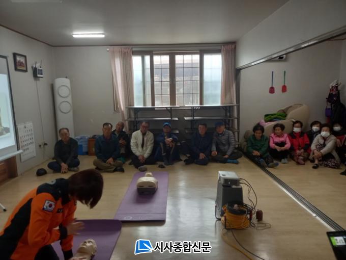 ÀÌ¾î ±¸·Ê ¼Ò¹æ¼´Â ½ÉÆó¼Ò»ý¼ú(CPR)°ú 119 ½Å°í ¿ä·É¿¡ ´ëÇØ ±³À°À» Çϰí, ½Ç½À¿ë ¸¶³×Å·À» Ȱ¿ëÇÑ CPR üÇèÀ» ÁøÇàÇÏ¿© ³ó¾÷Àε鿡°Ô ½ÇÁ¦ ÀÀ±Þ»óȲ ´ëÀÀ¹ýÀ» ¾È³»Çß´Ù.