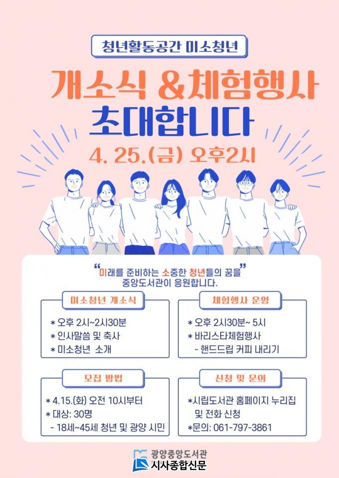 ¡®¹Ì·¡¸¦ ÁغñÇÏ´Â ¼ÒÁßÇÑ Ã»³â¡¯À» ÀǹÌÇÏ´Â ¡®¹Ì¼Òû³â¡¯Àº û³âµéÀÇ Ã¢ÀÇ È°µ¿À» Áö¿øÇÏ°í Æ¯È ÇÁ·Î±×·¥°ú üÇè Ȱµ¿À» Á¦°øÇϴ û³â ¸ÂÃãÇü °ø°£À¸·Î Ȱ¿ëµÉ ¿¹Á¤ÀÌ´Ù.