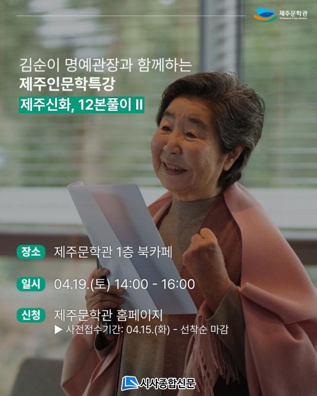 À̹ø Ư°Àº ±è¼øÀÌ ¸í¿¹°üÀåÀÇ Àú¼ ¡®Á¦ÁÖ½ÅÈ¡¯¸¦ ¹ÙÅÁÀ¸·Î ÇÑ ÀúÀÚ Á÷°À¸·Î, Áö³ 2¿ù 22ÀÏ ÁøÇàµÈ ¡®Á¦ÁÖ½ÅÈ, 12º»Ç®ÀÌ¡¯ °¿¬ÀÇ ÈÄ¼Ó ÇÁ·Î±×·¥ÀÌ´Ù.