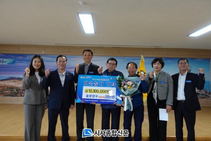 °ü»êÀ¾ Àüü 41°³ ¸¶À», 123¸íÀ» ´ë»ó(¸¶À»º° 3¸í, 1¸í´ç 10¸¸¿ø)À¸·Î ¾²ÀÏ ¼ö ÀÖµµ·Ï 1õ2¹é3½Ê¸¸¿ø(12,300,000¿ø)À» Àü³²»çȸº¹Áö °øµ¿¸ð±Ýȸ¿¡ ±âŹÇß´Ù.