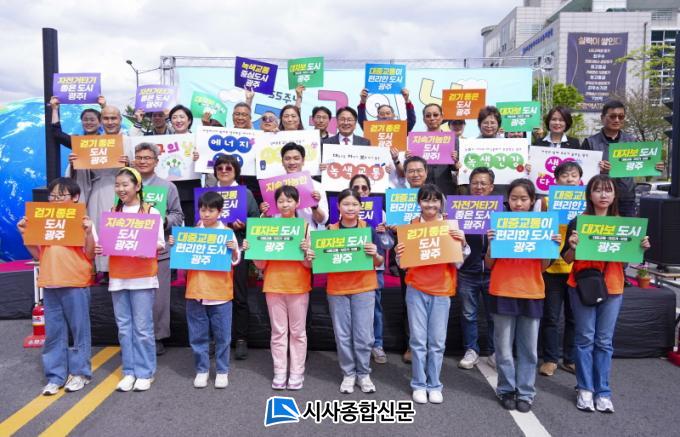 À̳¯ Çà»ç¿¡´Â °­±âÁ¤ ±¤ÁÖ½ÃÀå°ú ½Å¼öÁ¤ ±¤ÁÖ½ÃÀÇȸ ÀÇÀåÀ» ºñ·ÔÇØ ½Ã¹Î 1000¿©¸íÀÌ Âü°¡Çß´Ù. ¿ÃÇØ ¡®Áö±¸ÀÇ ³¯¡¯ ½½·Î°ÇÀº ¡®¿ì¸®ÀÇ ÈûÀ¸·Î GREEN Áö±¸¡¯·Î, À̹ø ±â³äÇà»ç´Â ±âÈÄÀ§±â »óȲÀ» ÀνÄÇÏ°í »ýȰ ¼Ó ź¼ÒÁ߸³À» À§ÇÑ ÀÛÀº ½ÇõÀ» ÅëÇØ Áö±¸¸¦ ÇÔ²² ÁöŰÀÚ´Â Àǹ̷Π¿­·È´Ù.
