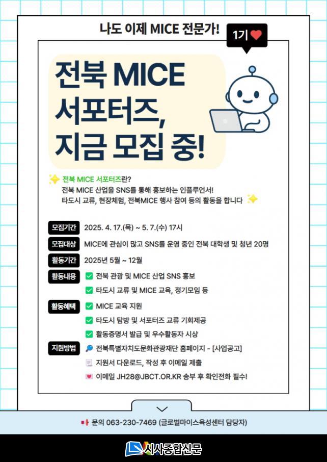 ƯÈ÷, À̹ø ¸ðÁýÀº ¡®ÀüºÏ û³â ¸¶À̽º ¼Æ÷ÅÍÁ 1±â Ãâ¹üÀ¸·Î, ±× ½ÃÀÛ ÀÚü¿¡ Å« Àǹ̰¡ ÀÖ´Ù. ÀüºÏ MICE »ê¾÷ÀÇ º»°ÝÀûÀÎ ¼ºÀå ±â¹ÝÀ» ¸¶·ÃÇϴ ù °ÉÀ½ÀÌ´Ù. û³â ¼Æ÷ÅÍÁî´Â ´Ü¼øÇÑ Âü¿©ÀÚ°¡ ¾Æ´Ñ, ÀüºÏ MICE »ýŰ踦 ÇÔ²² ¸¸µé¾î°¡´Â ÁÖ¿ªÀÌ µÉ °ÍÀÌ´Ù.