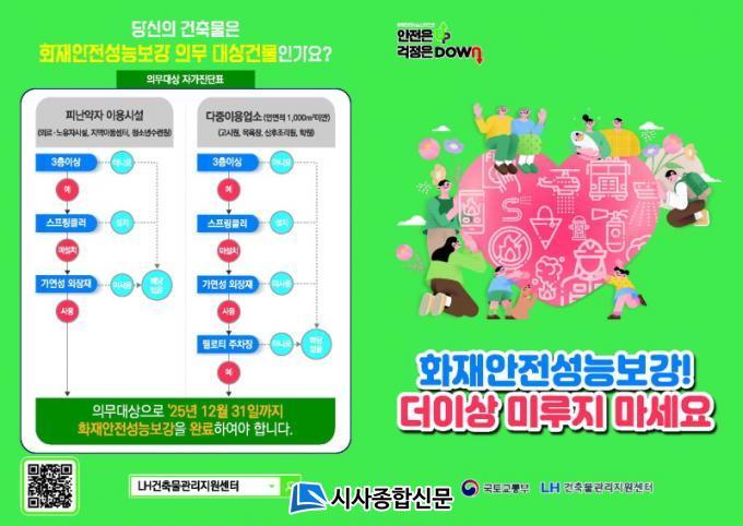 ¡®ÈÀç¾ÈÀü¼º´É º¸°»ç¾÷¡¯Àº ÈÀç¾ÈÀü ±âÁØÀÌ °ÈµÇ±â Àü¿¡ Áö¾îÁø °ÇÃ๰ÀÇ ¾ÈÀüÀ» È®º¸Çϱâ À§ÇØ ºÒ¿¡ Ÿ±â ½¬¿î °ÇÃ๰ÀÇ ¿ÜÀåÀç ±³Ã¼¿Í ½ºÇÁ¸µÅ¬·¯ ¼³Ä¡ µîÀ» Áö¿øÇÏ´Â »ç¾÷À¸·Î ¿ÃÇØ ¸»±îÁö ½ÃÇàµÈ´Ù.