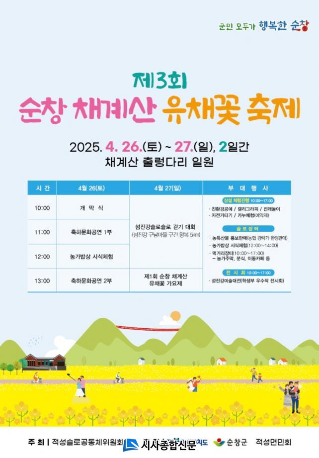 ÃÖ¿µÀÏ ¼øÃ¢±º¼ö´Â¡°Ã¤°è»êÀ» ¹è°æÀ¸·Î ¸¸°³ÇÑ À¯Ã¤²É°ú ÇÔ²²ÇÏ´Â À̹ø ÃàÁ¦´Â ¼øÃ¢ÀÇ ÀÚ¿¬°ú ¹®È¸¦ ÇÔ²² Áñ±æ ¼ö ÀÖ´Â ÁÁÀº ±âȸ¡±¶ó¸ç,¡°¸¹Àº ºÐµéÀÌ ¹æ¹®ÇØ Áö¿ªÀÇ ¸Å·ÂÀ» Á÷Á¢ üÇèÇØ º¸½Ã±æ ¹Ù¶õ´Ù¡±°í ¹àÇû´Ù.