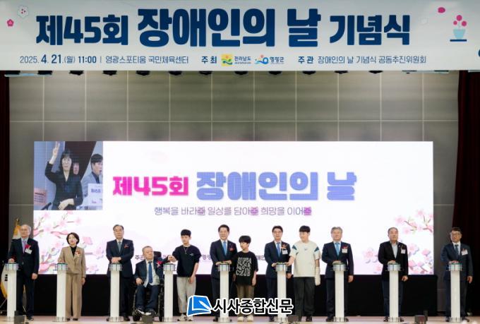 Àå¾ÖÀο¡ ´ëÇÑ ÁֹεéÀÇ ÀÌÇØ ÁõÁø°ú ÀçȰÀÇ½Ä °íÃ븦 À§ÇØ Àü¶ó³²µµ¿Í ¿µ±¤±ºÀÌ °øµ¿ ÁÖ°üÇϰí, Á¦45ȸ Àü¶ó³²µµ Àå¾ÖÀÎÀÇ ³¯ ±â³ä½Ä °øµ¿ÃßÁøÀ§¿øÈ¸(Áöü․³ó¾Æ․½Ã°¢)°¡ ÁÖÃÖÇÑ À̳¯ Çà»ç¿¡´Â ±è¿µ·Ï Àü¶ó³²µµÁö»ç, Àå¼¼ÀÏ ¿µ±¤±º¼ö, À̰³È£ ±¹È¸ÀÇ¿ø, ¼¹ÌÈ ±¹È¸ÀÇ¿ø, ±èÅÂ±Õ Àü¶ó³²µµÀÇȸ ÀÇÀå, ±è°Çå ¿µ±¤±ºÀÇȸ ÀÇÀåÀ» ºñ·ÔÇÑ Àå¾ÖÀÎ °ü·Ã À¯°ü±â°ü °ü°èÀÚµéÀÌ Âü¼®ÇØ ÀÚ¸®¸¦ ºû³Â´Ù.