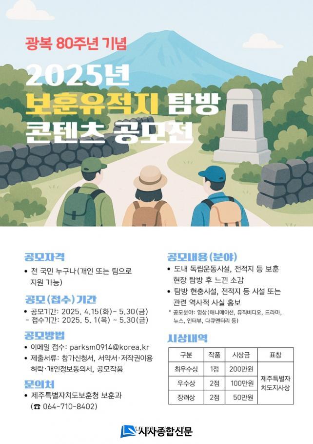 Âü°¡ ½ÅûÀº Àü ±¹¹Î ´©±¸³ª °¡´ÉÇϸç, Á¢¼ö´Â 5¿ù 1ÀϺÎÅÍ 31ÀϱîÁö ¿Â¶óÀÎ(À̸ÞÀÏ)À¸·Î Á¦ÃâÇÏ¸é µÈ´Ù. ¼ö»óÀÛÀº ¸ðµÎ 5Á¡À¸·Î ¡âÃÖ¿ì¼ö»ó 1Á¡ ¡â¿ì¼ö»ó 2Á¡ ¡âÀå·Á»ó 2Á¡À» ¼±Á¤ÇØ ¼ÒÁ¤ÀÇ ½Ã»ó±Ý°ú Á¦ÁÖµµÁö»ç ǥâÀ» ¼ö¿©ÇÒ ¿¹Á¤ÀÌ´Ù.