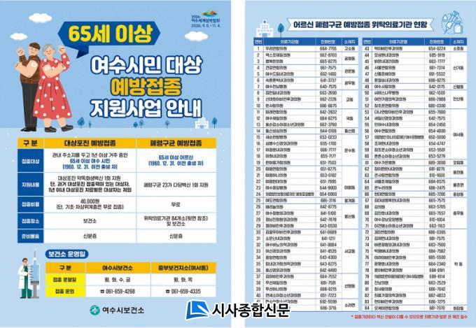 | ¿©¼ö½Ã, 65¼¼ ÀÌ»ó ½Ã¹Î Æó·Å±¸±Õ¡¤´ë»óÆ÷Áø ¿¹¹æÁ¢Á¾ Áö¿ø»ç¾÷ ÃßÁø Æó·Å±¸±Õ 23°¡ ´Ù´ç¹é½Å ¹«·á Áö¿ø, ´ë»óÆ÷Áø »ý¹é½Å ¿¹¹æÁ¢Á¾ºñ¿ë ÀϺΠÁö¿ø