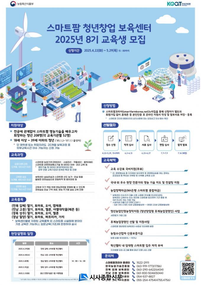 °íÈﱺ(±º¼ö °ø¿µ¹Î)Àº ¹Ì·¡ ÷´Ü³ó¾÷À» À̲ø û³â ³óºÎ ¾ç¼ºÀ» À§ÇØ Àü³² °íÈï ½º¸¶Æ®ÆÊ Çõ½Å¹ë¸® û³ââ¾÷ º¸À°¼¾ÅÍ 8±â ½Å±Ô ±³À°»ýÀ» ¸ðÁýÇÑ´Ù°í ¹àÇû´Ù.