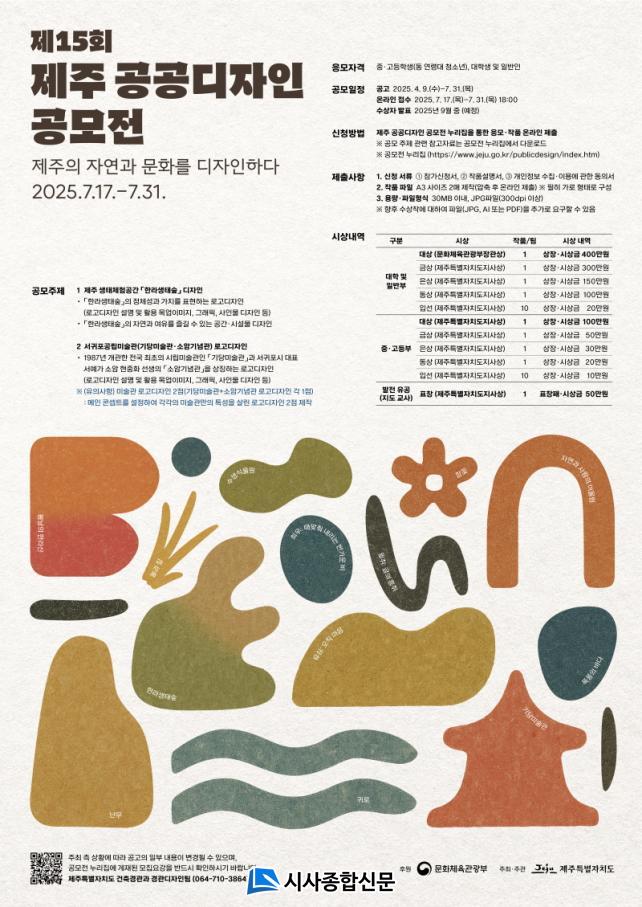 ÀÛǰ Á¢¼ö´Â ¿À´Â 7¿ù 17ÀϺÎÅÍ 31ÀϱîÁö Á¦ÁÖ °ø°øµðÀÚÀÎ °ø¸ðÀü ´©¸®Áý(https://www.jeju.go.kr/publicdesign)À» ÅëÇØ ¿Â¶óÀÎÀ¸·Î ÁøÇàµÈ´Ù. Á¢¼öÀÛÀº µðÀÚÀÎ, ¹®È, °ÇÃà µî °ü·Ã ºÐ¾ß Àü¹®°¡·Î ±¸¼ºµÈ ½É»çÀ§¿øÈ¸ÀÇ ½É»ç¸¦ °ÅÃÄ 9¿ù Áß ¼ö»óÀÛÀ» ¹ßÇ¥Çϰí, 10¿ù Áß ½Ã»ó½ÄÀ» °³ÃÖÇÒ ¿¹Á¤ÀÌ´Ù.