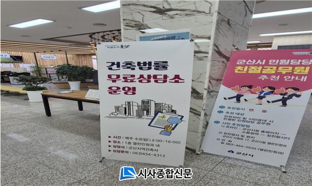 [½Ã»çÁ¾ÇսŹ® = ¿À½ÂÅà ±âÀÚ] ±º»ê½Ã°¡ ¸ÅÁÖ ¼ö¿äÀÏ(¿ÀÈÄ 2½Ã~4½Ã) ½Ãû ¿¸°¹Î¿ø°ú ³» ¹Î¿ø½Ç¿¡¼ ÁøÇàÇÏ´Â ¡®°ÇÃà¹ý·ü ¹«·á »ó´ã¼Ò¡¯°¡ ½Ã¹Îµé¿¡°Ô ÁÁÀº ¹ÝÀÀÀ» ¾ò°í ÀÖ´Ù.