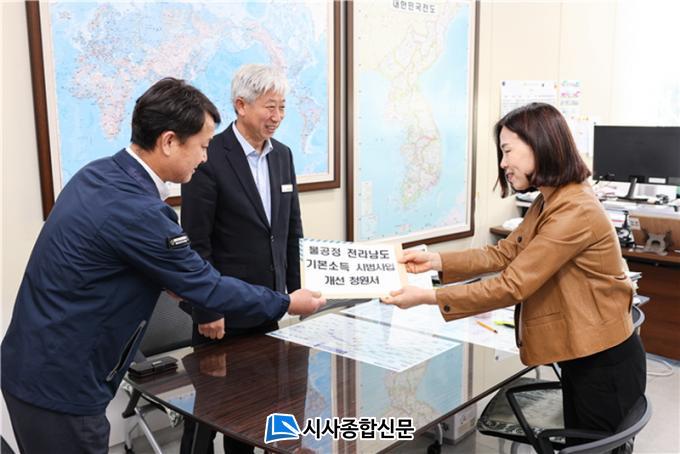 [½Ã»çÁ¾ÇսŹ® = ¿À½ÂÅà ±âÀÚ] Àü¶ó³²µµÀÇȸ ¹ÚÇü´ë ÀÇ¿ø(Áøº¸´ç, ÀåÈï1)Àº 4¿ù 24ÀÏ Á¤ÇÐö È­¼ø±º Àü ³ó¹ÎȸÀå°ú ÇÔ²² ¡®ºÒ°øÁ¤ Àü¶ó³²µµ ±âº»¼Òµæ ½Ã¹ü»ç¾÷ °³¼±¡¯ û¿ø¼­¸¦ Àü¶ó³²µµÀÇȸ¿¡ Á¦ÃâÇß´Ù.
