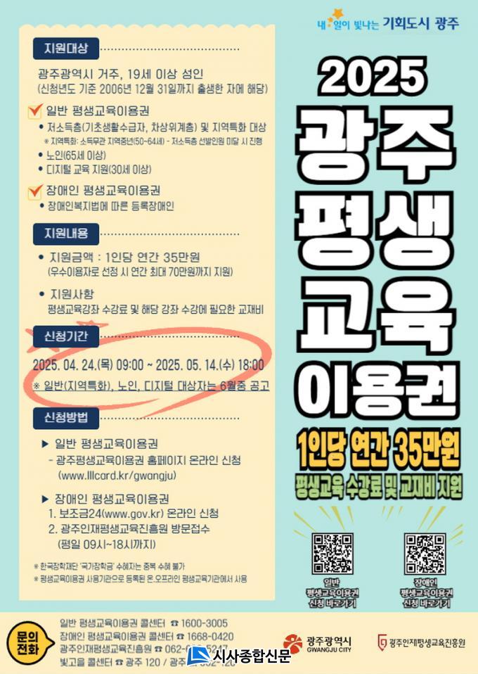 ±¤Áֽô À̹ø »ç¾÷ÀÇ Àü´ã±â°üÀ¸·Î (Àç)±¤ÁÖÀÎÀçÆò»ý±³À°ÁøÈï¿øÀ» ÁöÁ¤ÇØ ÇÔ²² ÃßÁøÇÑ´Ù. ƯÈ÷ ¿ÃÇØ´Â Áö³ÇØ¿Í ´Þ¸® Æò»ý±³À°ÀÌ¿ë±Ç ´ë»óÀÚ¸¦ È®´ëÇß´Ù. Áö³ÇØÀÇ °æ¿ì Àú¼ÒµæÃþ(ÀϹÝÀÌ¿ë±Ç)°ú Àå¾ÖÀÎ(Àå¾ÖÀÎÀÌ¿ë±Ç)À» ´ë»óÀ¸·Î Áö¿øÇßÁö¸¸, ¿ÃÇØ´Â ³ëÀÎ(³ëÀÎÀÌ¿ë±Ç), µðÁöÅÐ ¼Ò¿Ü°èÃþ(µðÁöÅÐÀÌ¿ë±Ç)±îÁö Áö¿ø ´ë»óÀ» ³ÐÇû´Ù.